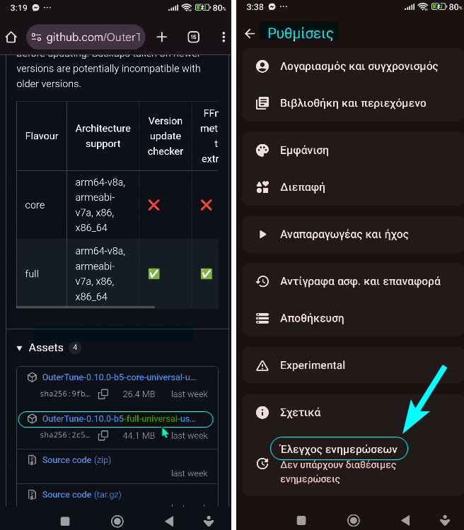 Όπως είναι φυσικό το OuterTune δεν είναι στο Google Play Store, και πρέπει να το εγκαταστήσουμε, απευθείας από το GitHub (Assets – έκδοση full-universal) πατώντας εδώ. To apk είναι απόλυτα ασφαλές.