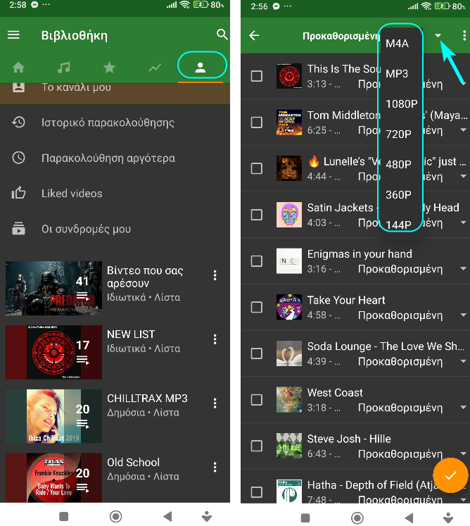 Τις λήψεις για τις ήδη υπάρχουσες λίστες μας στο YouTube music, τις εντοπίζουμε από το εικονίδιο του λογαριασμού μας.