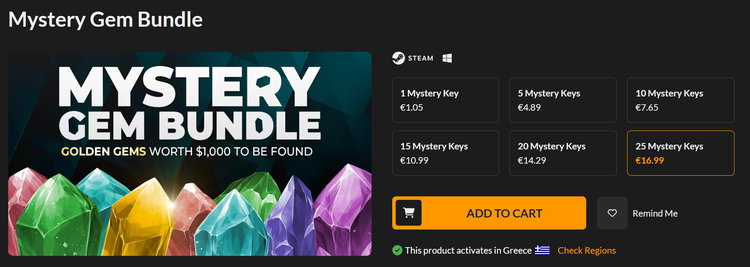 Να σημειώσουμε ότι τα κλειδιά που αγοράζουμε με το Mystery Gem Bundle είναι κρυφά. Μαθαίνουμε τι αγοράσαμε μόνο όταν η ιστοσελίδα προσθέσει τα κλειδιά στον λογαριασμό μας.
