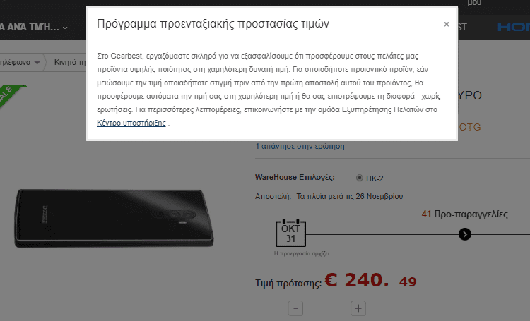 Το GearBest διαθέτει “Price Protection”, αποστέλλοντας το κινητό στη νέα χαμηλότερη τιμή, και επιστρέφοντας τη διαφορά, ανεξάρτητα αν το προπαραγγείλαμε σε υψηλότερη τιμή.