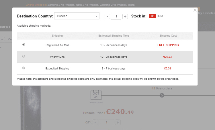 Ενώ υπάρχει δωρεάν αποστολή, ο ενδεδειγμένος τρόπος αποστολής που είναι 100% αποτελεσματικός στο να γλιτώσουμε το τελωνείο είναι η επιλογή Priority Line στα €20.33, την οποία θα βρούμε αποκλειστικά στο GearBest. Το κινητό θα έρθει στο σπίτι μας με courier.