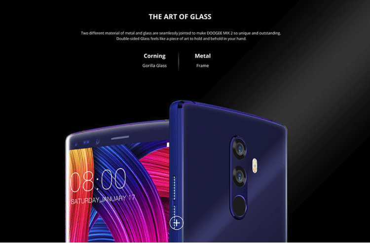 Το DOOGEE Mix 2 έχει μεγάλη οθόνη υψηλής ανάλυσης και premium κατασκευή εξ' ολοκλήρου από γυαλί και αλουμίνιο, με κυρτή σχεδίαση στο σώμα, και τρέχει το Android 7.1 Nougat.