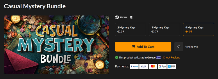 Να σημειώσουμε ότι τα κλειδιά που αγοράζουμε με το Casual Mystery Bundle είναι κρυφά. Μαθαίνουμε τι αγοράσαμε μόνο όταν η ιστοσελίδα προσθέσει τα κλειδιά στον λογαριασμό μας.