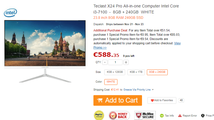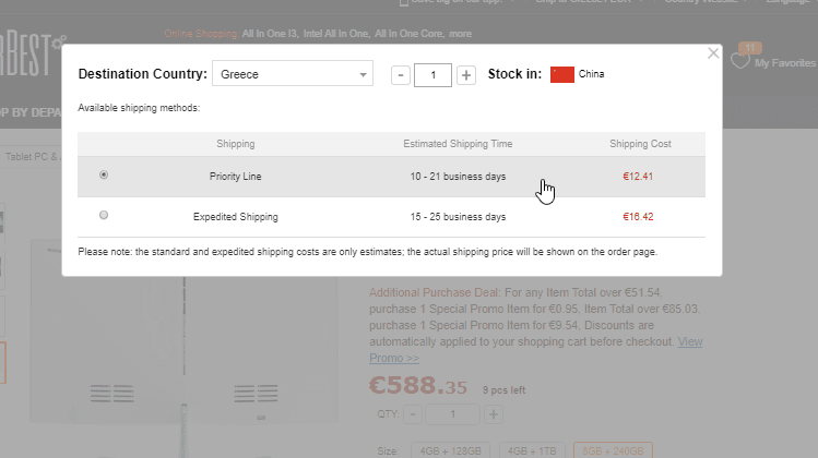 Ο ενδεδειγμένος τρόπος αποστολής που είναι 100% αποτελεσματικός στο να γλιτώσουμε το τελωνείο είναι η επιλογή Priority Line στα €12.41, την οποία θα βρούμε αποκλειστικά στο GearBest. Το AIO PC θα έρθει στον χώρο μας με courier.