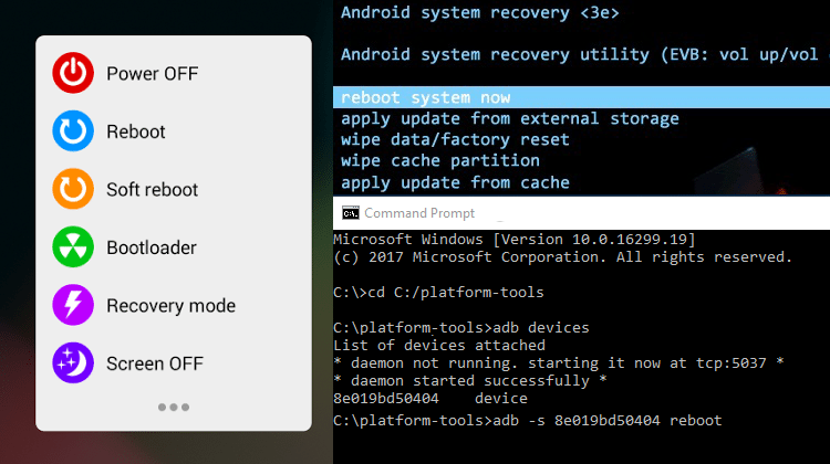 Ελπίζοντας πως όλα πάνε καλά, έχουμε συνδεδεμένο το κινητό και γνωρίζουμε το ID του. Πληκτρολογούμε την εντολή “adb –s ID_ΣΥΣΚΕΥΗΣ reboot”. Η εντολή αυτή απλά θα πραγματοποιήσει επανεκκίνηση του κινητού μας.