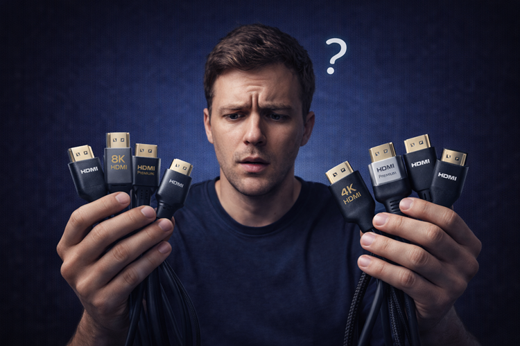 Ορισμένα καλώδια φέρουν ενδείξεις όπως “8K”, που υποδηλώνουν υποστήριξη HDMI 2.1, όμως αυτό δεν ισχύει πάντα. Γι’ αυτό, κατά την αγορά, ελέγχουμε τη συσκευασία ή τις προδιαγραφές: 48Gbps σημαίνει HDMI 2.1, ενώ 18Gbps αντιστοιχεί σε HDMI 2.0.