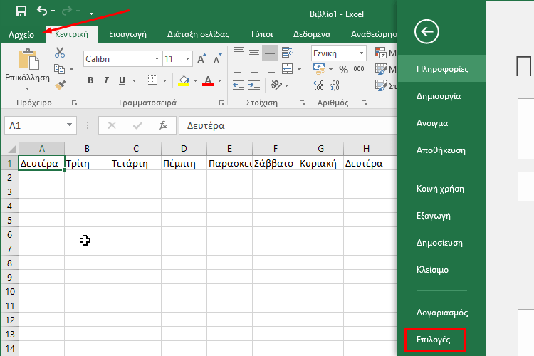 Η προσθήκη μίας λίστας γίνεται μέσω των ρυθμίσεων, και για να μπούμε σε αυτές πατάμε “Αρχείο” και “Επιλογές”.