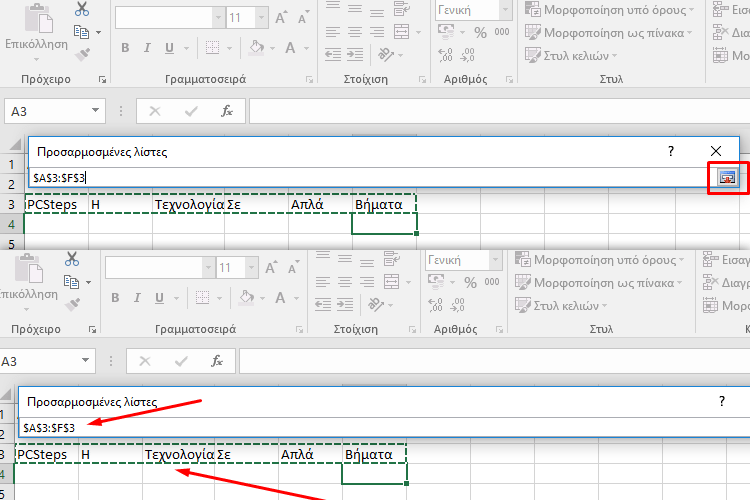Δημιουργία Προσαρμοσμένης Λίστας στο Microsoft Excel