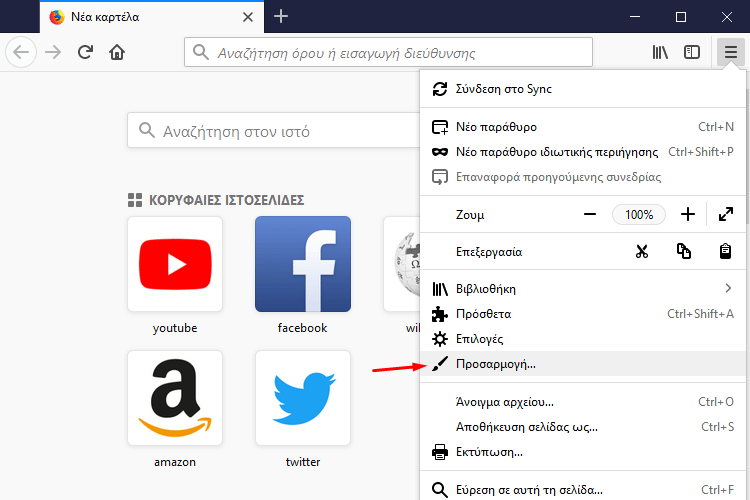 Κάνοντας κλικ στις τρεις γραμμές πάνω δεξιά, θα βρούμε την επιλογή “Προσαρμογή”, την οποία πατάμε και ανοίγει το ανάλογο παράθυρο.