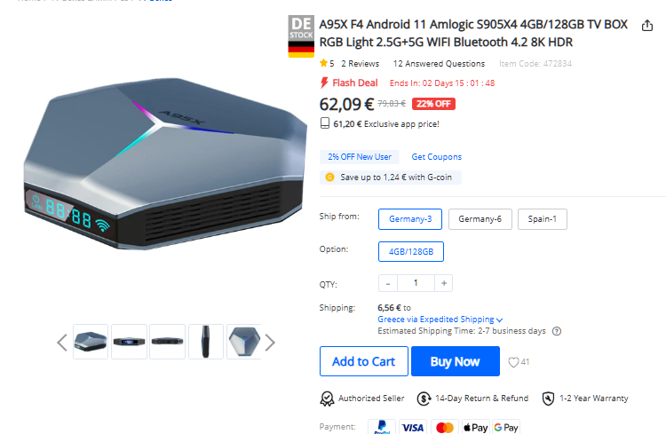 Το A95X F4διαθέτει το Android 11, 4GB RAM, 128GB αποθηκευτική μνήμη, HDR, και έρχεται από Γερμανία με ευρωπαϊκή πρίζα και χωρίς τελωνείο.
