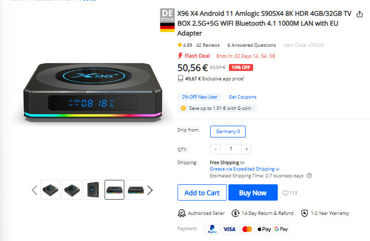 Όπως έχουμε αναφέρει στην αρχή, η διαφορά στην αγορά TV Box από τις κινέζικες αποθήκες έγκειται στο ότι έχουμε μεγαλύτερη αναμενόμενη διάρκεια παράδοσης σε σχέση με τον αντίστοιχο χρόνο των αποστολών από την Ευρώπη.