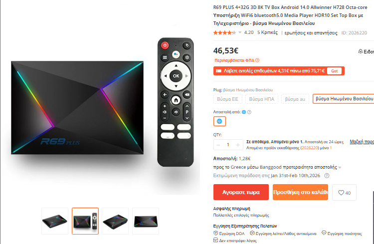 Αγορά TV Box από Ελλάδα