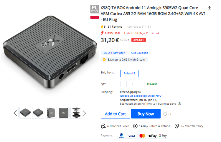 Το X98Q TV BOX έρχεται με Android 11, μνήμες 2GB/16GB και το αποστέλλουν από Πολωνία χωρίς τελωνείο.
