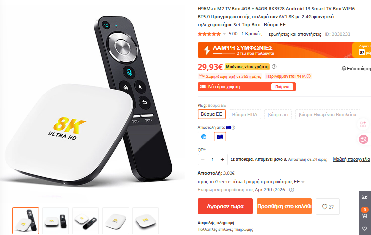 Αγορά TV Box από ευρωπαϊκές αποθήκες χωρίς τελωνείο