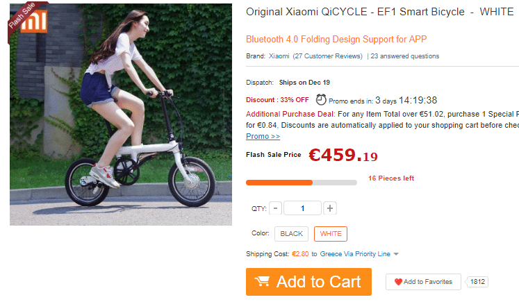 Το Xiaomi QiCYCLE κοστίζει €459.19 και υπάρχουν διαθέσιμα 16 λευκά κομμάτια. Το μαύρο εξαντλήθηκε την ώρα που γράφαμε την προσφορά. Μπορούμε να το αγοράσουμε από εδώ.