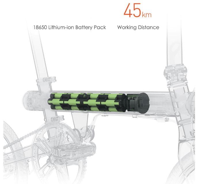 Το ποδήλατο έχει ηλεκτροκίνητο κινητήρα που μπορεί να δώσει ταχύτητα έως και 20 χλμ / ώρα. Τροφοδοτείται από μια πολύ μεγάλη μπαταρία ιόντων λιθίου 18650 mAh που έχει χωρητικότητα 280 Wh. Σύμφωνα με την εταιρεία του δίνει αυτονομία ηλεκτροκίνησης έως 45 χιλιόμετρα.