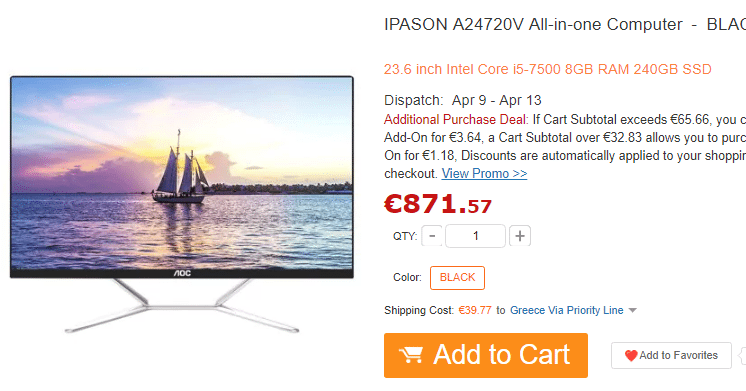 Πολλοί από εμάς θα θέλαμε ένα ισχυρό PC που να είναι αόρατο χωρίς κουτί και όγκο, με όλα τα υποσυστήματα ενσωματωμένα στην οθόνη. Δείτε την νέα γενιά των κινέζικων AIO PC και το δυνατό IPASON A24720V με λεπτή φινετσάτη οθόνη AOC 23,6’’ FHD, 7ης γενιάς τετραπύρηνο i5-7500, 8GB DDR4 μνήμη που δέχεται επέκταση, 240GB SSD, 4 USB 3.0 θύρες + 2 USB 2.0 και ηχεία, με Priority αποστολή χωρίς τελωνείο.