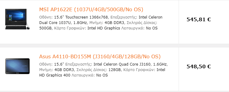 Διαμέσου του ελληνικού καταστήματος μπορούμε άμεσα να γνωρίζουμε κατά προσέγγιση τις τιμές του hardware που απαρτίζει το κινέζικο AIO PC.