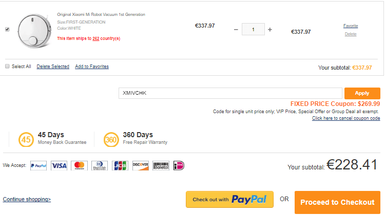 Ο τρόπος αποστολής που είναι 100% αποτελεσματικός στο να γλιτώσουμε το τελωνείο είναι η επιλογή Priority Line στα €29.18. Το ρομπότ καθαρισμού της Xiaomi θα έρθει στο σπίτι μας με courier.