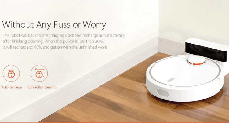 Η Xiaomi Mi Robot διαθέτει βάση φόρτισης και μόλις αρχίζει και εξαντλείται η μπαταρία, η έξυπνη συσκευή επιστρέφει αυτόματα και από μόνη της στη βάση της, έτσι ώστε να φορτιστεί.