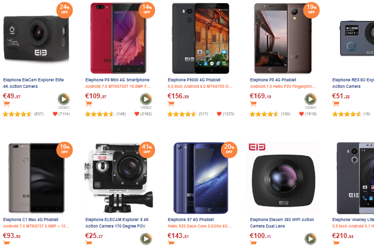 Μπορούμε να δούμε όλες τις προσφορές σε smartphone, phaplet και smartwatch Elephone σε αυτή την σελίδα του Gearbest.