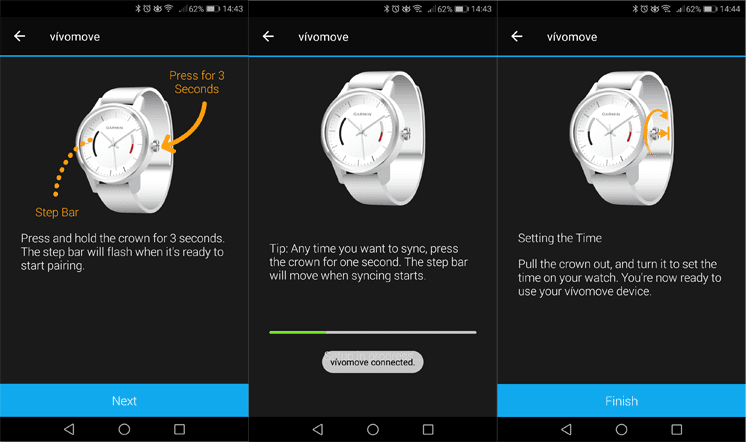 Τα δεδομένα που καταγράφει το Vivomove συγχρονίζονται αυτόματα με την εφαρμογή, αρκεί να έχουμε ενεργό το bluetooth του κινητού μας.