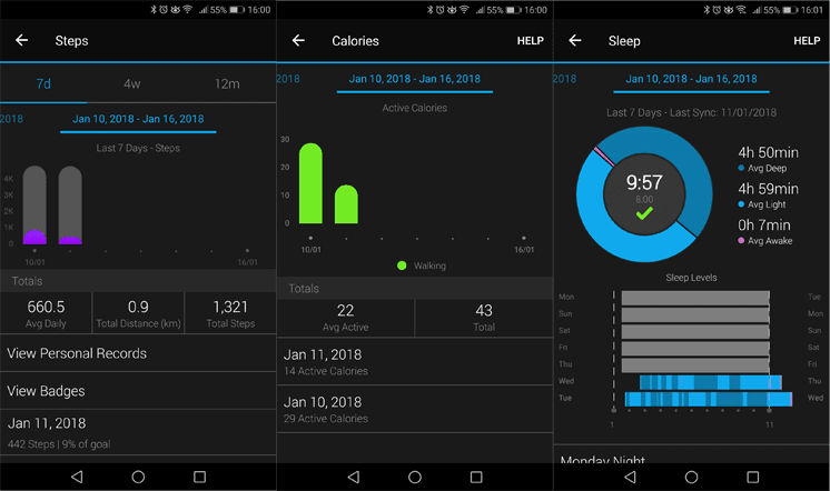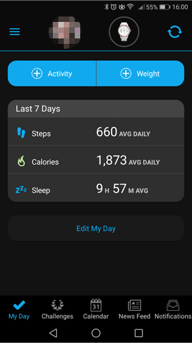 Στη καρτέλα “My Day” βλέπουμε να βήματα, τις θερμίδες, και τον ύπνο της κάθε ημέρας.