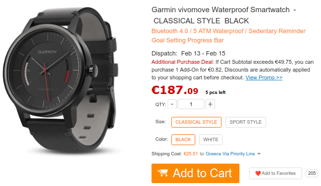 Το Garmin Vivomove ήταν χορηγία από το πολύ γνωστό ηλεκτρονικό κατάστημα Gearbest.