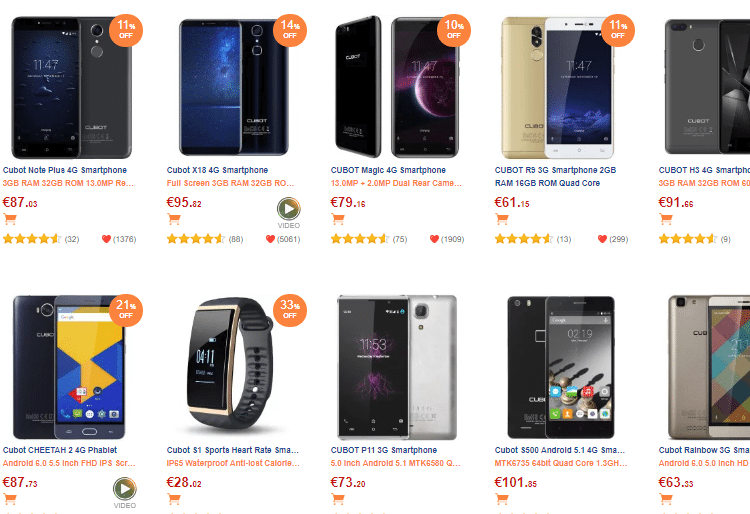 Μπορούμε να δούμε όλες τις τρέχουσες προσφορές σε smartphone, phablet και smartwatch Cubot, σε αυτή την σελίδα του Gearbest.