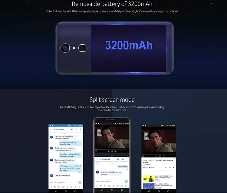Το Cubot X18 τρέχει το Android 7.0 Nougat, και μπορούμε να έχουμε όλες τις δυνατότητες του λειτουργικού της Google, Η μπαταρία έχει χωρητικότητα στα 3200mAh και είναι πολύ χρήσιμο που είναι αποσπώμενη.