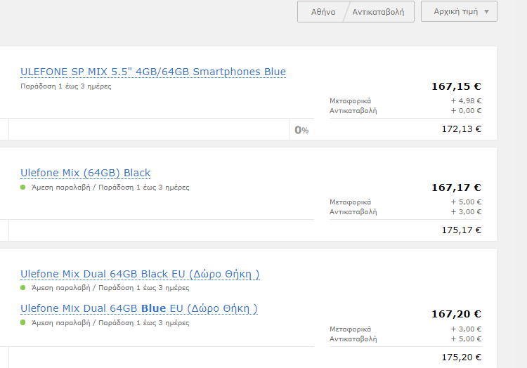 Την ώρα που γράφουμε αυτή την προσφορά, το Ulefone Mix είναι διαθέσιμο στα ελληνικά καταστήματα σε αρκετα υψηλότερη τιμή.