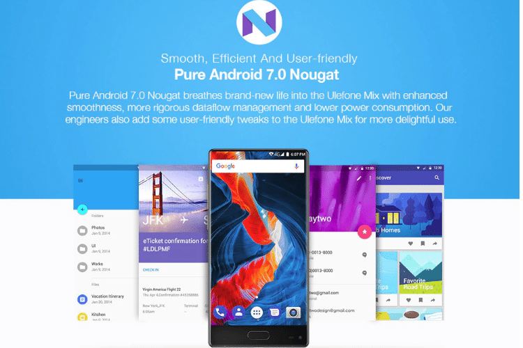Το Ulefone Mix 4G έχει μεγάλη οθόνη με Corning Gorilla Glass και ταυτόχρονα όμορφη εμφάνιση, και τρέχει το Android 7.0.