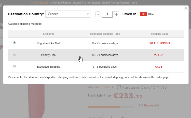 Ενώ υπάρχει δωρεάν αποστολή, ο ενδεδειγμένος τρόπος αποστολής που είναι 100% αποτελεσματικός στο να γλιτώσουμε το τελωνείο είναι η επιλογή Priority Line στα €21.22, την οποία θα βρούμε αποκλειστικά στο GearBest. Το κινητό θα έρθει στο σπίτι μας με courier.