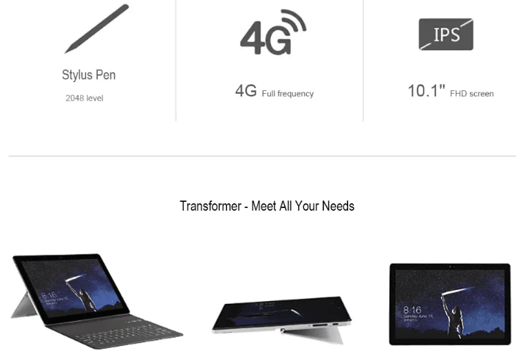 Το tablet ξεχωρίζει από το μέγεθος της Capacitive οθόνης αφής IPS δέκα σημείων, στις 10.1 ίντσες και με ανάλυση στα 1920 x 1200 (WUXGA). Διαθέτει τον οκταπύρηνο επεξεργαστή MTK6753 64-bit στα 1.5GHz.