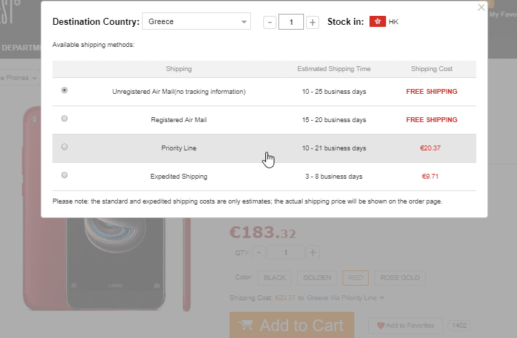 Ενώ υπάρχει δωρεάν αποστολή, ο ενδεδειγμένος τρόπος αποστολής που είναι 100% αποτελεσματικός στο να γλιτώσουμε το τελωνείο είναι η επιλογή Priority Line στα €20.37. Το κινητό θα έρθει στο σπίτι μας με courier.