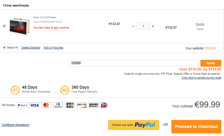 Το Onda V10 4G μπορούμε να το αγοράσουμε από εδώ στα €99.99. Για να επιτύχουμε την καλύτερη τιμή πρέπει να χρησιμοποιήσουμε το ακόλουθο κουπόνι: