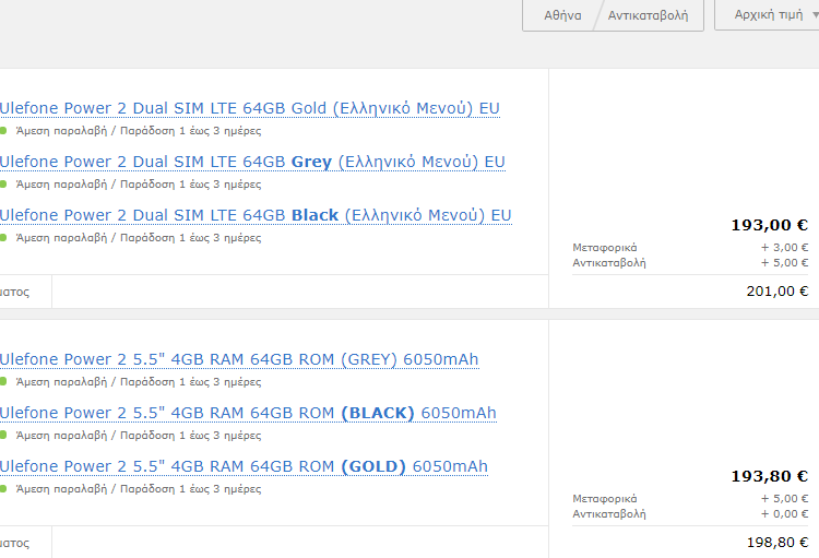 Υπάρχουν ελληνικά καταστήματα που εισάγουν μια γκάμα των συσκευών της Ulefone, αλλά τις διαθέτουν σε αρκετά υψηλότερες τιμές. Την ώρα που γράφουμε αυτή την προσφορά, το συγκεκριμένο μοντέλο της προσφοράς είναι διαθέσιμο σε αρκετά υψηλότερη τιμή.