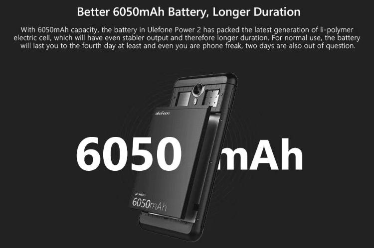 Η συσκευή διαθέτει τον οκταπύρηνο επεξεργαστή της γνωστής Mediatek, MTK6750T στα 1.5GHz. To Ulefone Power 2 έχει δυο κάμερες, 16.0ΜΡ η οπίσθια, και 8.0ΜΡ η μπροστινή. Διαθέτει φλας, και δέχεται ταυτόχρονα δυο κάρτες nano SIM, ειδάλλως μια micro SD και μια SIM.
