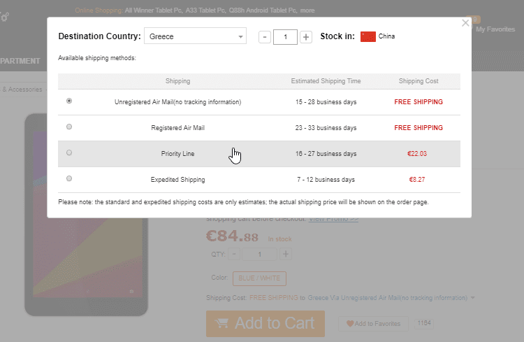Ενώ υπάρχει δωρεάν αποστολή, ο ενδεδειγμένος τρόπος αποστολής που είναι 100% αποτελεσματικός στο να γλιτώσουμε το τελωνείο είναι η επιλογή Priority Line. Το tablet θα έρθει στο σπίτι μας με courier.