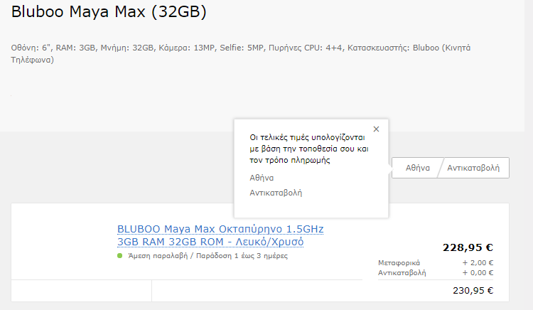 Δεν υπάρχουν ελληνικά καταστήματα που να διαθέτουν το Bluboo S1 4G. Στην ελληνική αγορά διατίθενται σε περιορισμένη γκάμα μερικά smartphones της Bluboo σε πολύ υψηλότερες τιμές.