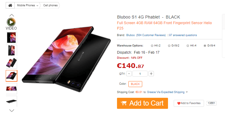 Η τιμή του Bluboo S1 ανέρχεται στα €140.87 και μπορούμε να το παραγγείλουμε από εδώ, με γρήγορη αποστολή από τις ευρωπαϊκές αποθήκες χωρίς κανένα κίνδυνο τελωνείου.