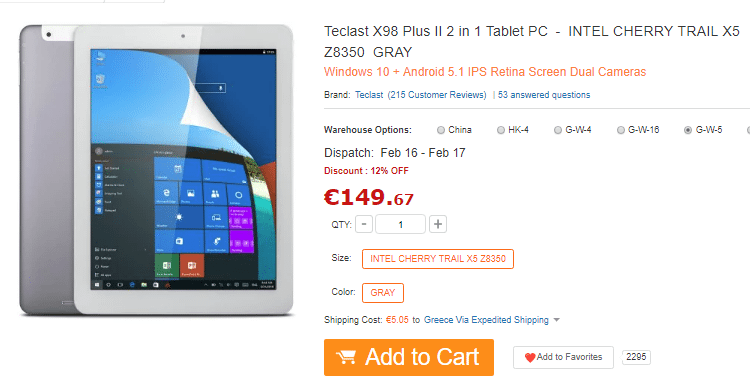 Το Teclast X98 Plus II 2 in 1 μπορούμε να το αγοράσουμε από εδώ. Tο Retina tablet θα διατίθεται στη τιμή των €149.67 με απευθείας αποστολή από τις Ευρωπαϊκές αποθήκες του Gearbest, που σημαίνει ότι δεν υπάρχουν τελωνειακοί δασμοί.