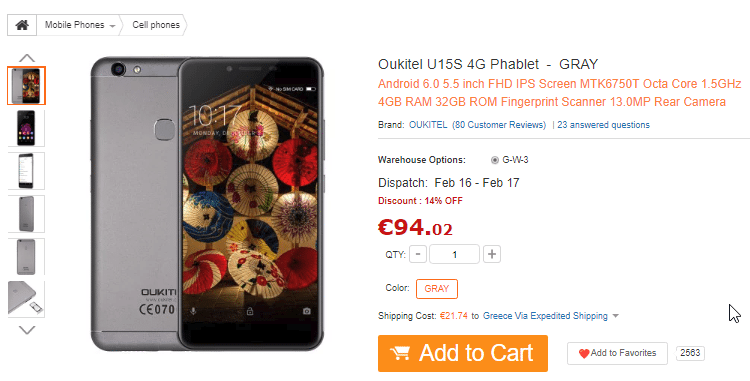 Το Oukitel U15S κοστίζει €94.02 και μπορούμε να το αγοράσουμε από εδώ, με γρήγορη αποστολή από τις ευρωπαϊκές αποθήκες χωρίς κανένα κίνδυνο τελωνείου. Η συσκευασία περιλαμβάνει θήκη από σιλικόνη.