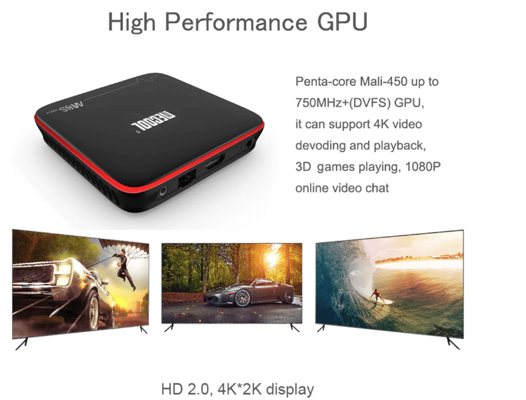 • Τετραπύρηνος επεξεργαστής Amlogic S905W 64-Bit ARM Cortex-A53 μέχρι 2GHz