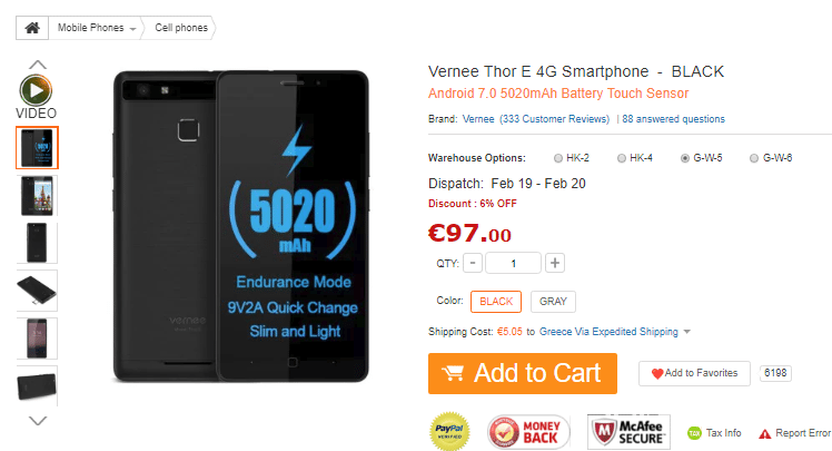 Το Vernee Thor Ε κοστίζει €97.00 και μπορούμε να το αγοράσουμε από εδώ με γρήγορη αποστολή από τις ευρωπαϊκές αποθήκες χωρίς κανένα κίνδυνο τελωνείου.
