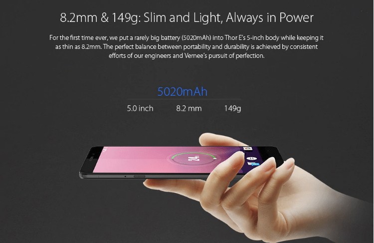 Και ποιος δεν θα ήθελε να έχει ένα δυνατό κινητό που ταυτόχρονα δεν απαιτεί φόρτιση για όλη την ημέρα. Πόσο μάλιστα αν είναι λεπτό με πολύ καλά χαρακτηριστικά και είναι και φθηνό. Δείτε το πλήρως μεταλλικό Vernee Thor E με πανίσχυρη μπαταρία στα 5020mAh, 3GB μνήμη και Android 7.0, σε φιλική τιμή και με ταχεία αποστολή από τις Ευρωπαϊκές αποθήκες χωρίς τον κίνδυνο του τελωνείου.