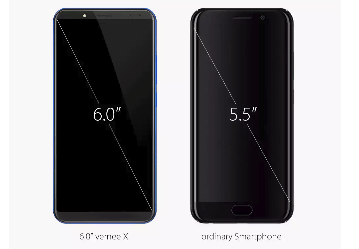 Το Vernee X ενώ έχει μεγάλη οθόνη 6.0” υψηλότατης ανάλυσης, η αίσθηση θα είναι ότι κρατάμε κινητό 5.5” ιντσών.