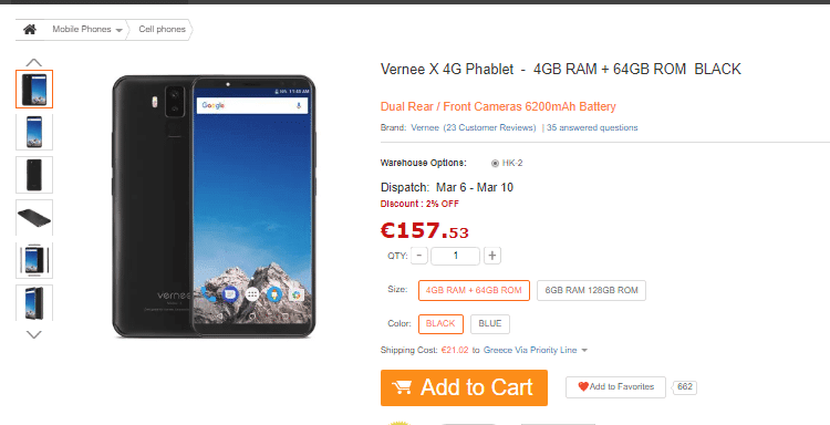 Υπάρχουν λίγα ελληνικά καταστήματα που εισάγουν κάποιες ελάχιστες συσκευές της Vernee. Την ώρα που γράφουμε αυτή την προσφορά, το συγκεκριμένο μοντέλο της προσφοράς δεν είναι διαθέσιμο σε κανένα κατάστημα της χώρας μας.