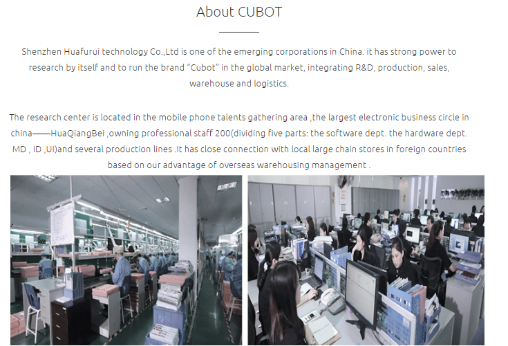 Η Cubot είναι μια από τις ανερχόμενες εταιρείες στην Κίνα, με ισχυρή παρουσία στην έρευνα. Δραστηριοποιείται στους τομείς του σχεδιασμού, ανάπτυξης και παραγωγής ψηφιακών ηλεκτρονικών προϊόντων.