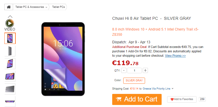 Στον οδηγό παρουσιάσαμε μια ενδιαφέρουσα προσφορά του Gearbest στο Chuwi Hi 8 Air με δυο λειτουργικά, και ωραίο σχεδιασμό. Αν έχετε αγοράσει tablet της κινέζικης αγοράς, μπορείτε να γράψετε τις εντυπώσεις σας, και και αν η σχέση απόδοσης/τιμής είναι τόσο καλή όσο φαίνεται.